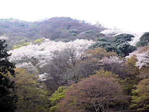 山の上も桜で白っぽく見えます。