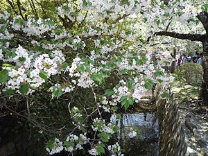 桜の季節ですが、かなり進んでいて花びらが舞っていました。その中に青々とした紅葉が印象的です。
