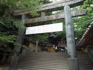 御前四段坂を上りきると本宮です。ここまで785段の石段を上がってきました。農業・殖産・医薬・海上守護の神として信仰されています。