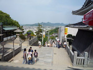 大門から後ろを振り返ると、今まで上がってきた階段と町並みが見渡せます。