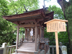 628段目にある旭社です。横には瓶があり一円玉を浮かべて、それが沈まないで浮くといいことがあるそうです。