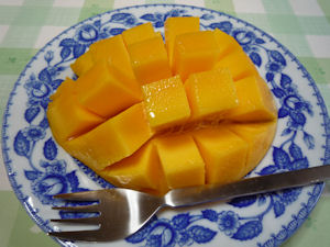 <沖縄市:完熟マンゴー> とても甘くて濃厚な完熟マンゴーです。ミネラルを多く含んでいるそうです。 URL:沖縄うまいもの屋!長浜商店 |