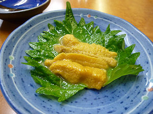 <今帰仁:古宇利産 うに> 古宇利産のウニは色が鮮やかで甘みが強く美味しいです。 URL :海幸.com TEL :050-3785-9778 |