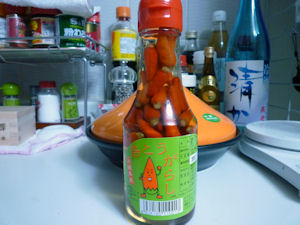 <豊見城市:島とうがらし> 唐辛子を泡盛につけたもので、炒め物に入れたり、汁に入れたりと万能な調味料です。 URL ::大城海産物加工所 TEL :098-850-1036 |