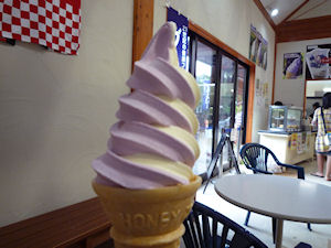 山梨といえば「葡萄」。果汁がたっぷり入ったソフトクリームです。 |