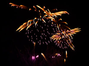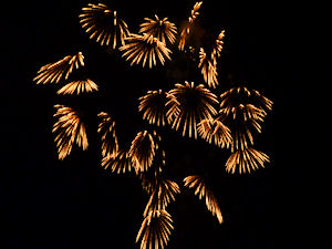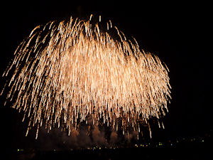 よく見かける、柳のように下に流れる迫力のある花火です。