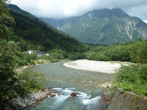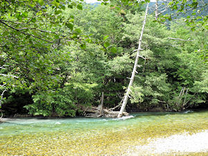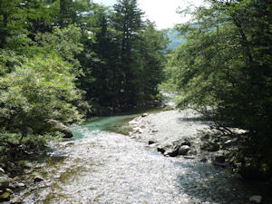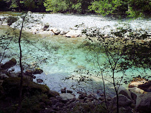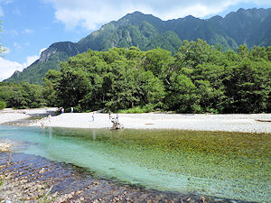 川の一部がエメラルドグリーンをしていました。 すごくきれい♪