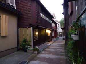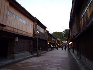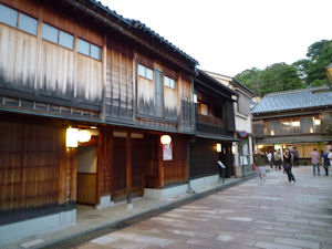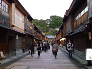 加賀藩が整備した茶屋街で、ここが一番広い通りです。昔ながらの建物を利用した旅館や雑貨屋さん、カフェ等があります。
