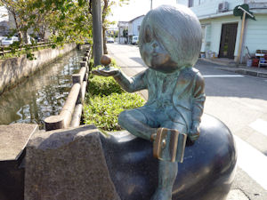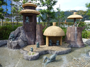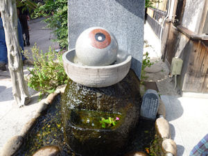 途中にある妖怪神社のシンボルになっている目玉おやじです。下から水が出ていて丸い目玉がゆっくり回っています。 |