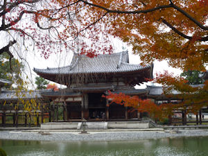 平等院鳳凰堂です。中に入るには特別拝観料が必要ですが、大きな仏像と煌びやかだったであろう装飾は見ごたえがあります。壁には雲上の神々様が飾られていますが、半分は記念館の方に移されていて間近で見ることができます。