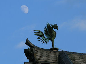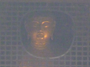 鳳凰堂をアップにすると丸く空いた窓から仏像を見ることができます。17倍でアップしたので画像が粗くなりました、、、