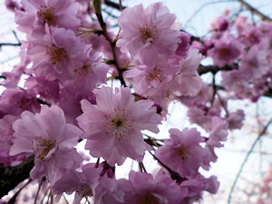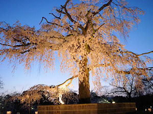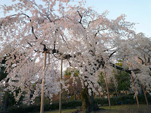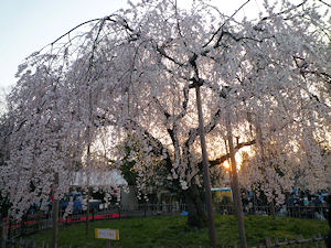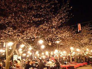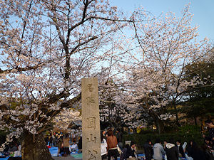 桜の下はブルーシートが敷かれ、店の前にはテーブルが並んでいます。基本、テーブル席は店のメニューを頼んだお客さんのためのものなので、出店で購入した場合は座れません、、