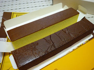 ご存じ長崎のカステラ。卵がふんだんに使われた生地は、しっとりふわっとしていて甘みがあり、底にはザラメが入っています。このザラメが癖になりますね。福砂屋ならではの食感です。阪急百貨店内に入っています。