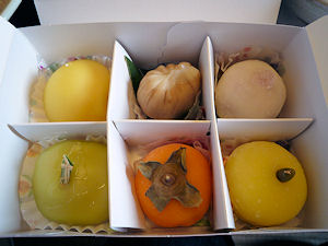 季節ごとに種類の変わるフルーツ大福がとっても可愛い和菓子やさんです。冬はメロン・柿、パイナップル・ラフランス・栗・苺でよく目にする苺大福同様に果肉がそのまま入ってます。