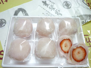 服部の駅からパチンコ店側へ向かい、商店街左側すぐです。和菓子のお店で中でもいちご大福が美味しいです。