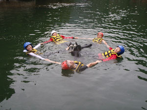 平行感覚? ボートのヘリにみんなで手をつないで立つのですが、、それだけではなく時計回りに回って下さいと、、、無理です、、他のボートの人は全員落下してました。