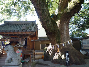 門の手前にある小さな神社で、とても大きな神木がありました。